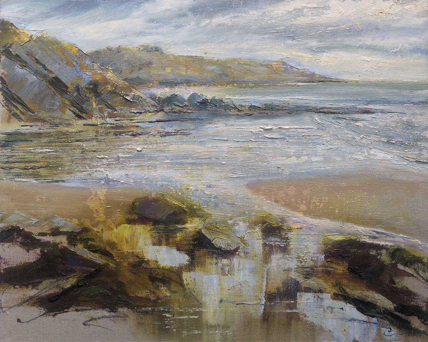 with beautiful light. I managed to balance on the reef with my easel, and enjoyed using a new paint colour called Green Gold.